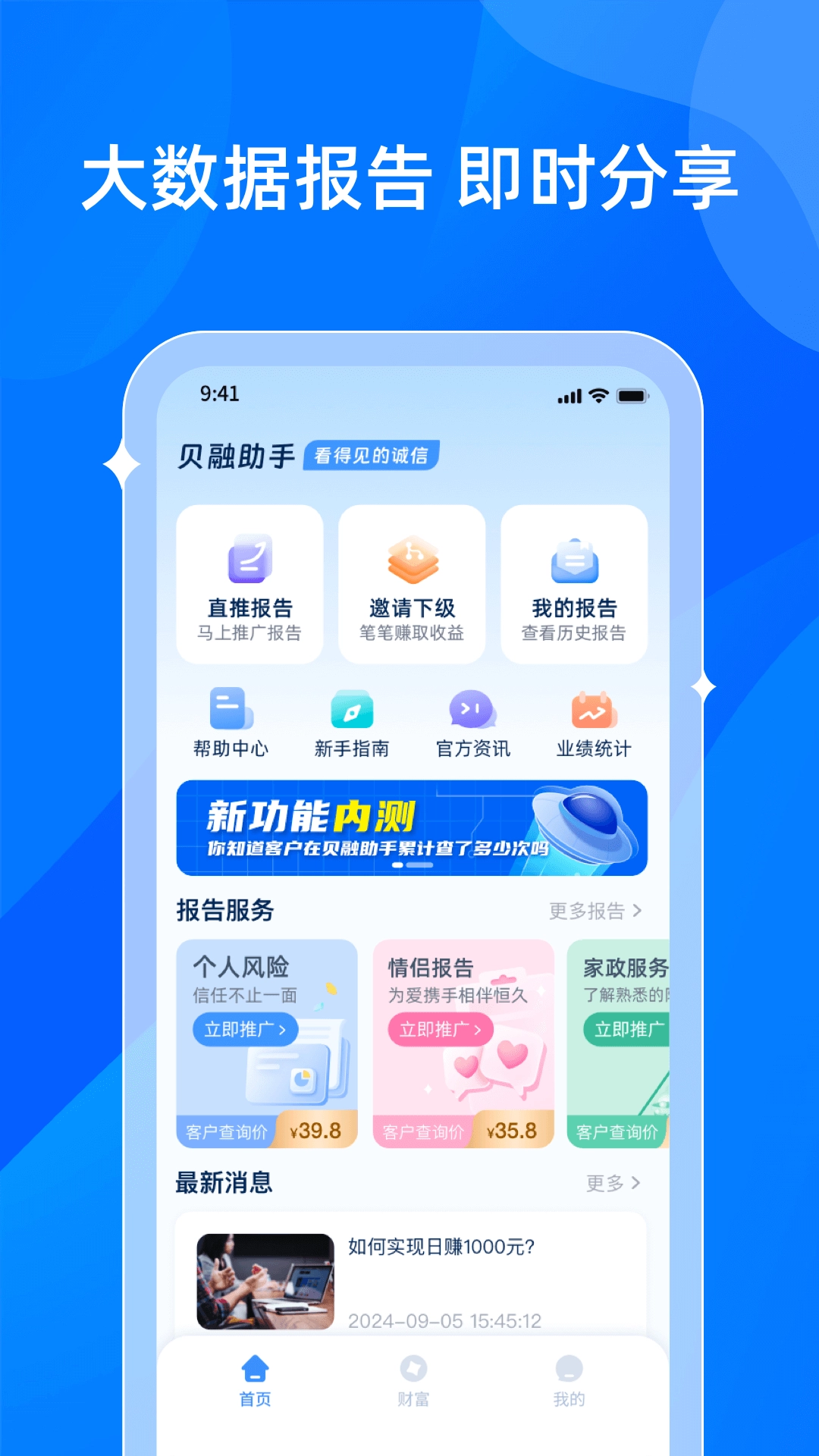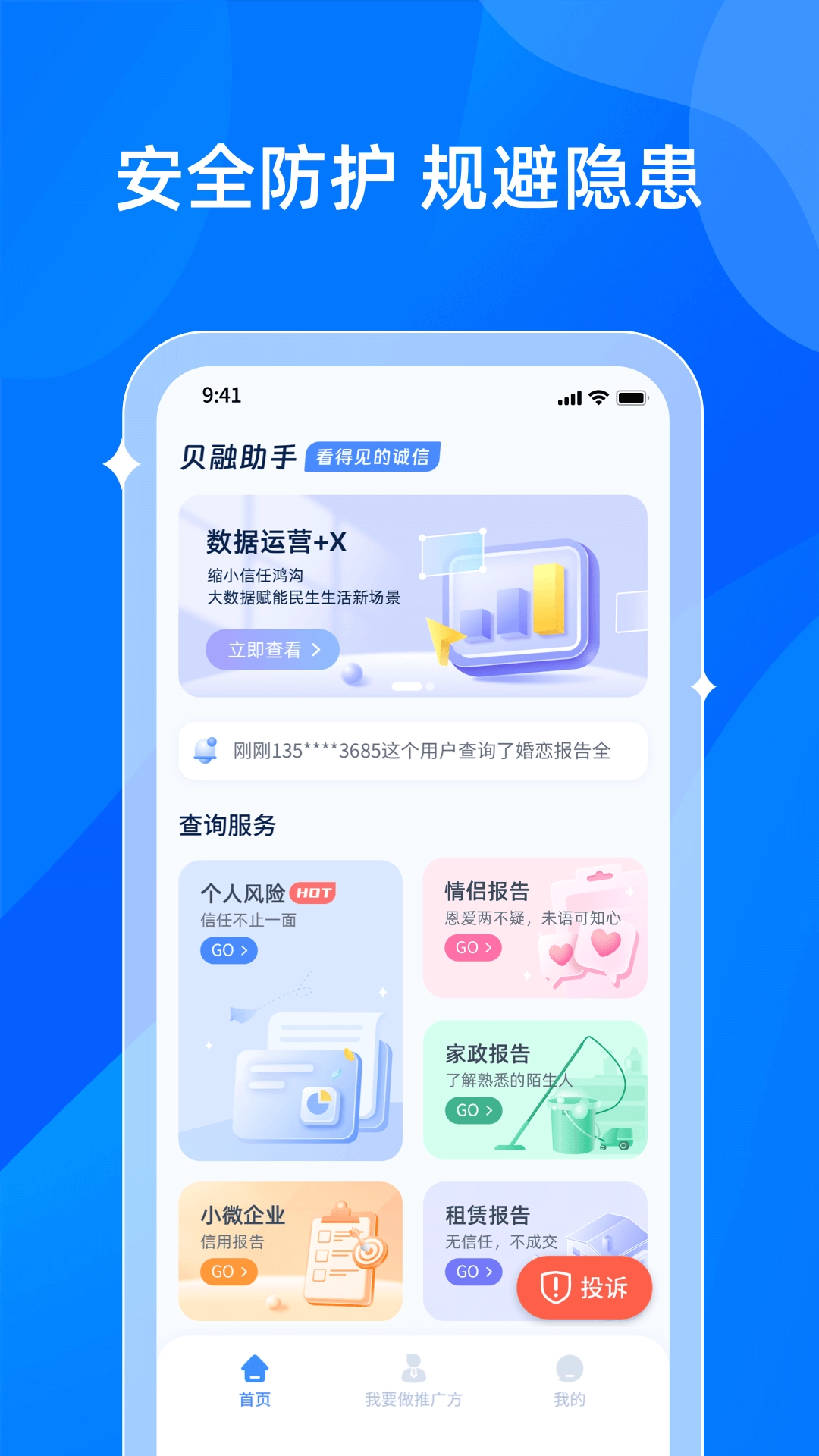 贝融助手,这是一款极为专业且好用的智能背景查询APP。它依托线上先进的大数据技术,致力于为你打造一个美好的数字生活环境,能在多种生活场景下,提供大数据查询方面的有力帮助。举个例子,当你挑选婚恋对象时,借助贝融助手,就能在此监测对方身份是否真实可信,有没有失信或受限等状况。而当你要选择保姆家政人员时,通过它又可以知晓该保姆是否安全可靠。要是你有这方面的需求,可一定别错过贝融助手哦。