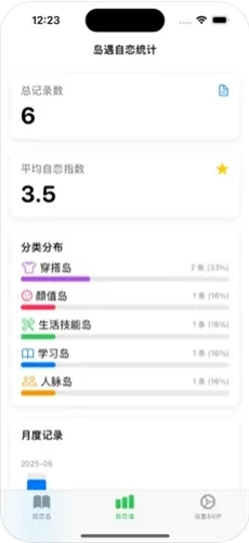 5、借助记录穿搭岛、人脉岛、生活技能岛以及颜值岛的行为,进而生成你的自恋统计数据。