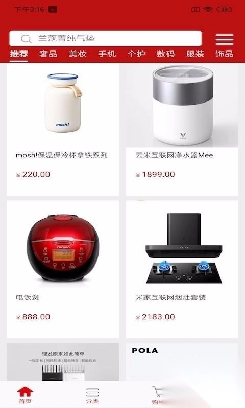 4、进入首页,查看诸多的商品信息