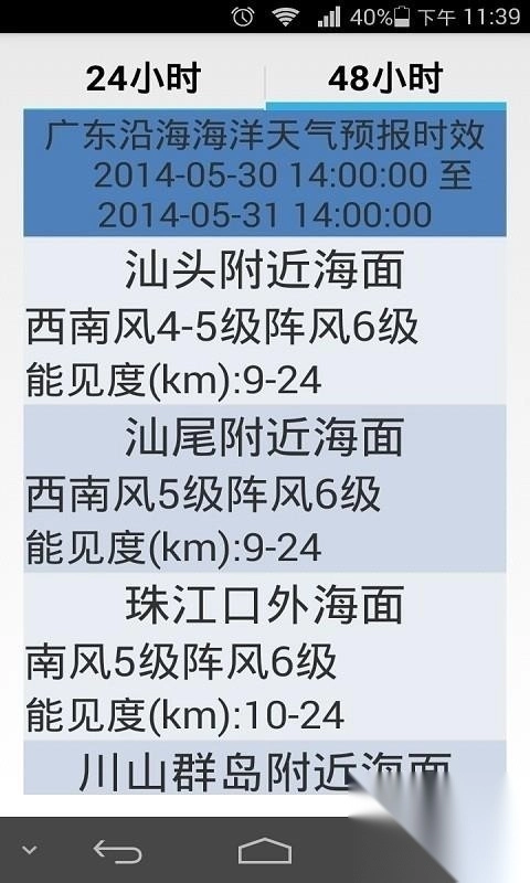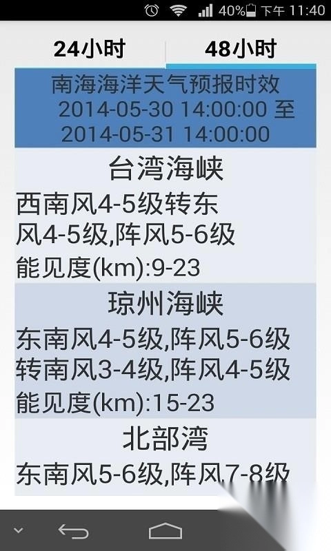 借助该软件,能够直接获取广东、海南等海域详尽的天气预报资讯。