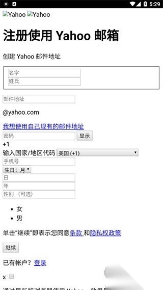 1. 在本站下载文件并完成安装后,打开雅虎邮箱app,接着点击创建账户。