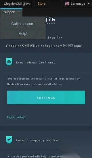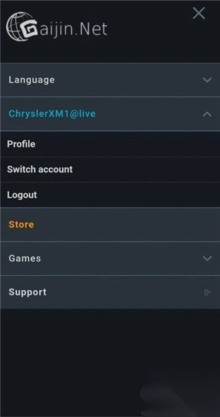 7、已绑定的用户,点击左上角 support,选择 Gaijin support。