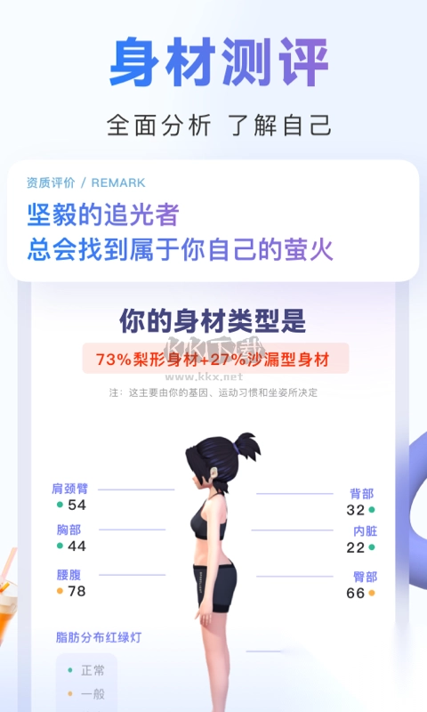 多维度训练数据记录分析:运动规律、运动偏好、相似用户...专业量表分析周、月、年,历史数据清晰呈现:累计数据、平均数据、训练部位强度...每周训练数据周报,达人周榜,还有更多精美成就徽章卡片