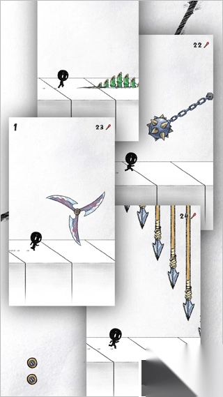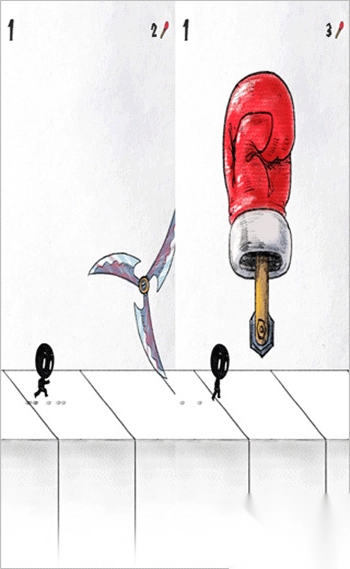刀片:火柴人跑至下方时快速点击屏幕两下减速,或凭运气直接跑过(概率低);