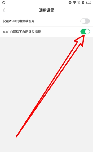 3、在通用设置中点击关闭‘在WI-FI网络下自动播放视频’