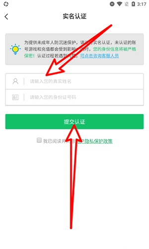 2、在实名认证中,输入真实信息后点击‘提交认证’即可