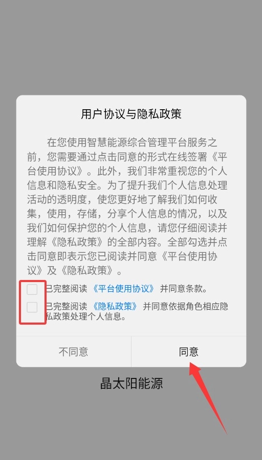 1、启动应用后仔细阅读用户协议,点击同意按钮进入下一步操作界面。