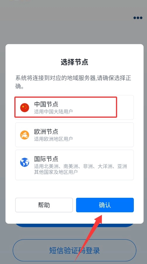 2、根据所在区域选择对应的服务节点,确认网络连接稳定后继续后续流程。
