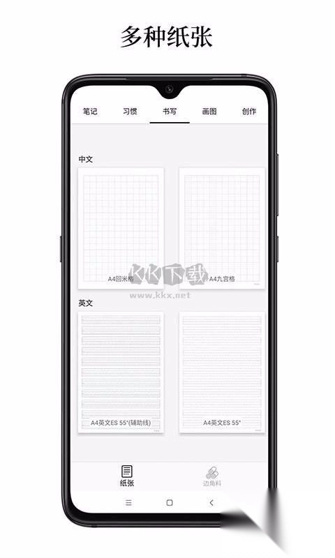 2、提供丰富的格式样式,能看到里面的九宫格、米格、辅助线以及拼音四线三格等;