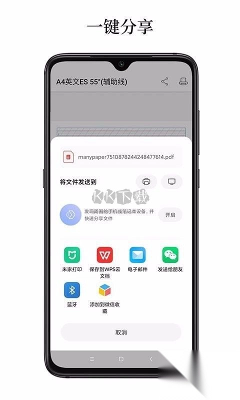 6、拥有丰富的分享选择渠道,分享页面中展示了米家打印、保存到WPS文档或电子邮件等方式;