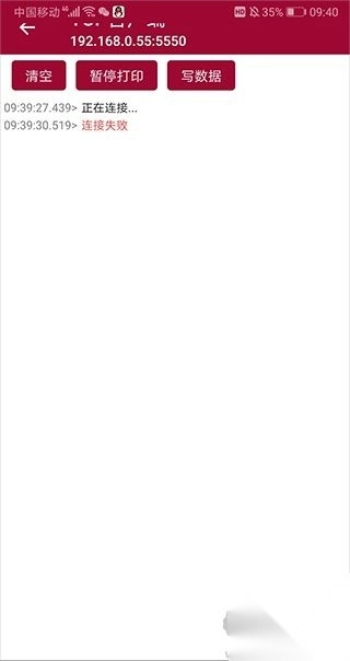 5、判断连接状况:若连接失败,无法接收数据,界面会弹出连接失败的提示信息。