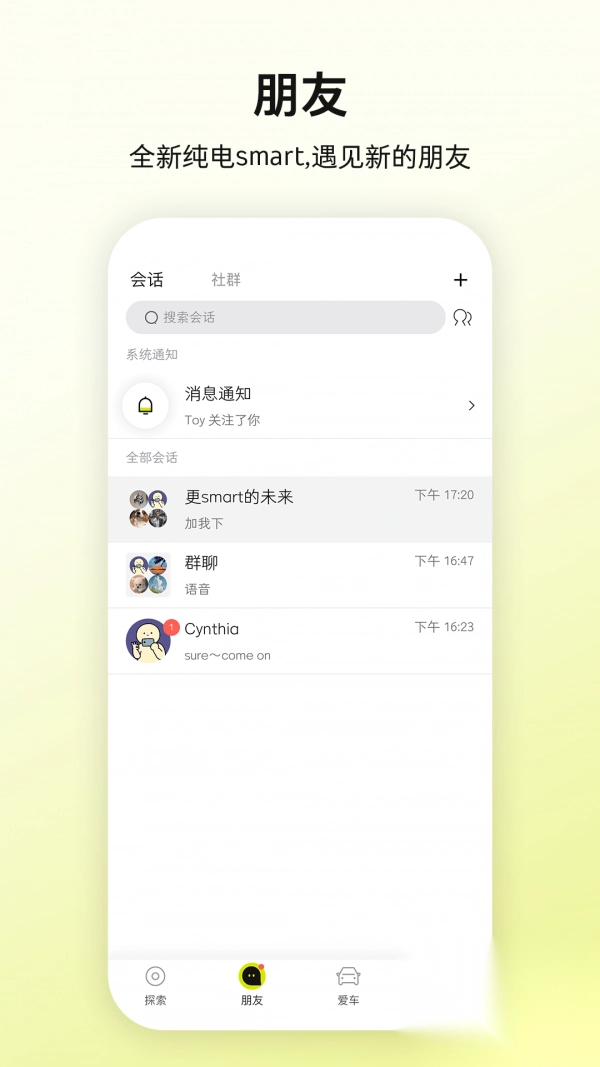 奔驰smart汽车APP安卓版,是专门为smart汽车车主量身定制的服务软件。车主们能在此掌握自己爱车的状况,还能与众多车友交流用车心得,分享自身经验。一旦有最新车型发布,车主也能第一时间知晓,不会错过任何精彩资讯。快来体验一下吧!