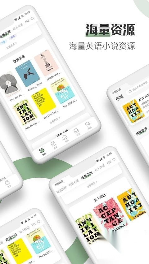 英语读书App是一款专注于英语书籍阅读的软件,它集合了丰富多样的英语读物,像小说、名著、传记、儿童文学以及短篇故事等应有尽有,能够充分满足不同读者的阅读需求。读者可以依据自己的喜好,自由自主地挑选书籍阅读。在功能上,该App支持中英翻译、阅读批注、书签标记以及离线下载等,极大地方便了用户随时随地学习。而且,每天都会有优质内容更新,助力用户轻松寻觅到心仪的书籍,让英语阅读变得更加简单惬意。