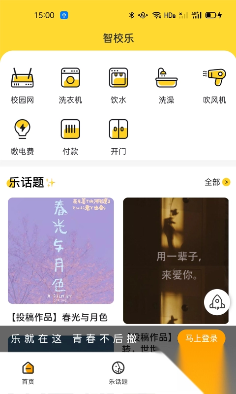 4、【学生必备工具】涵盖共享洗衣、热水充值、快递代收等高频率服务,大幅简化校园生活流程,已然成为高校学生生活的首选助手。