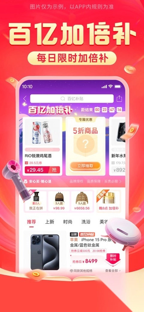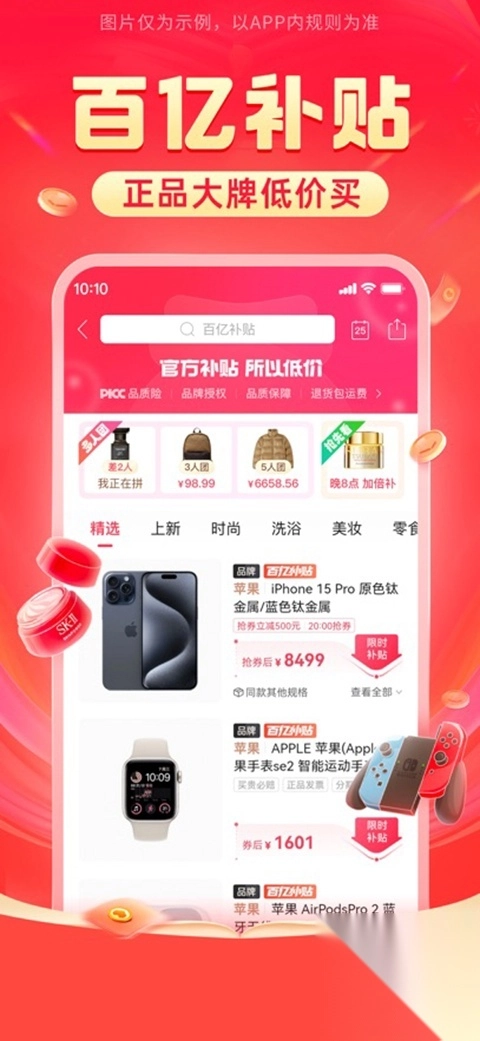 2、百亿补贴:精选补贴全网热销品牌商品,直接降价,购物不必做算术题。