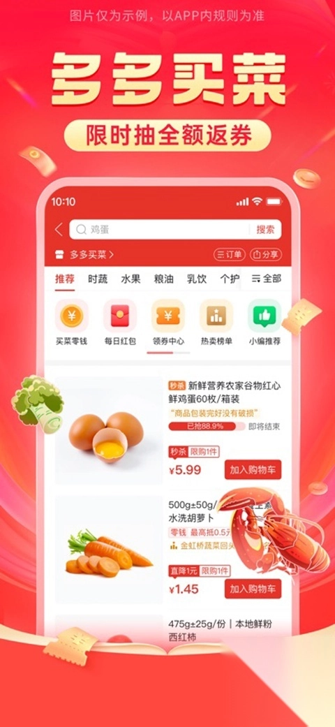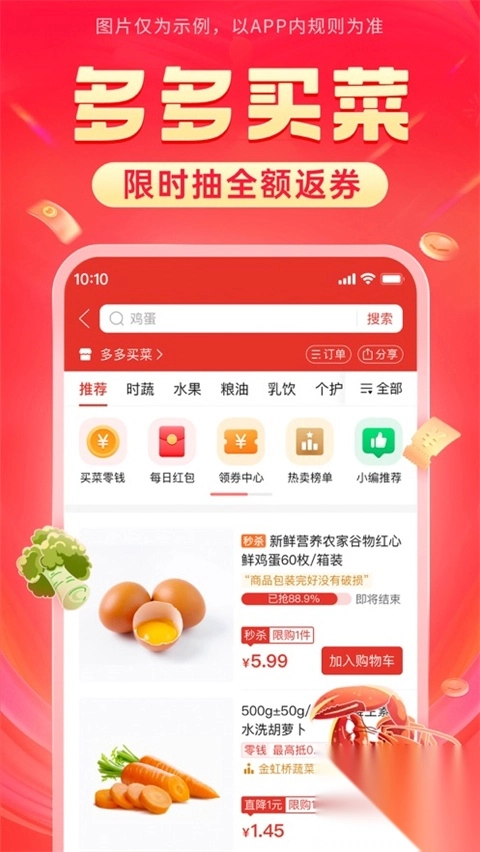 2、从田间到餐桌,避免中间环节损耗,百亿补贴加专项补贴,买菜更划算。