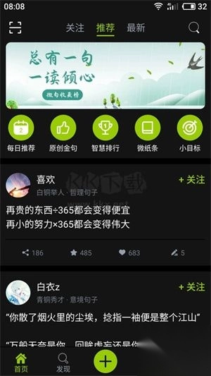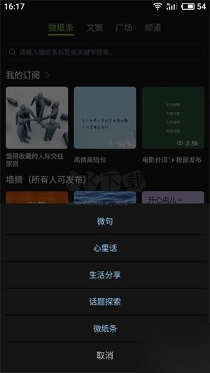 2、用一句话记录生活中的点滴、言行、所见与所想,在微句里寻得内心深处的声音。