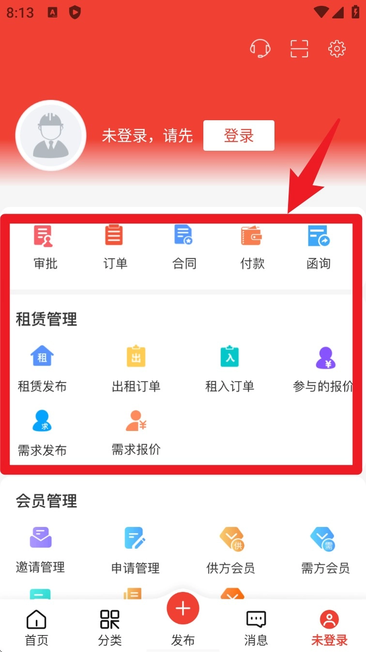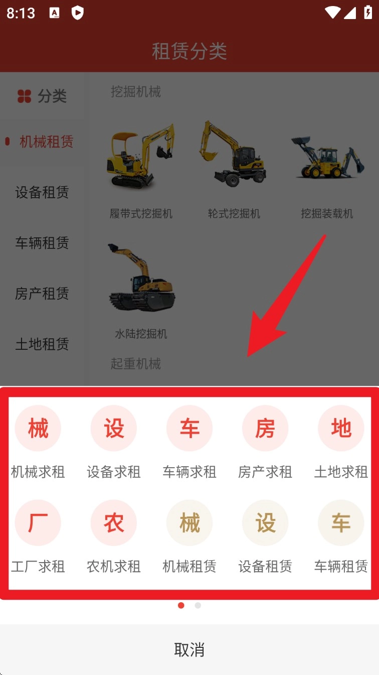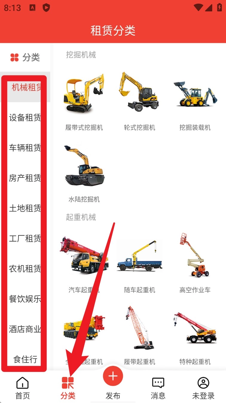 3. 点击底部导航栏中的「分类」,即可进入租赁分类页面,在此页面能够依据行业或者设备类型,快速找到所需资源。