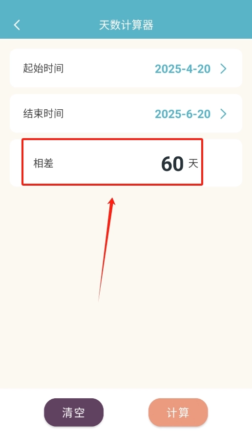 3、点击 “计算” 后稍作等待,页面便会迅速显示出这两个时间之间相差的天数,结果一目了然。