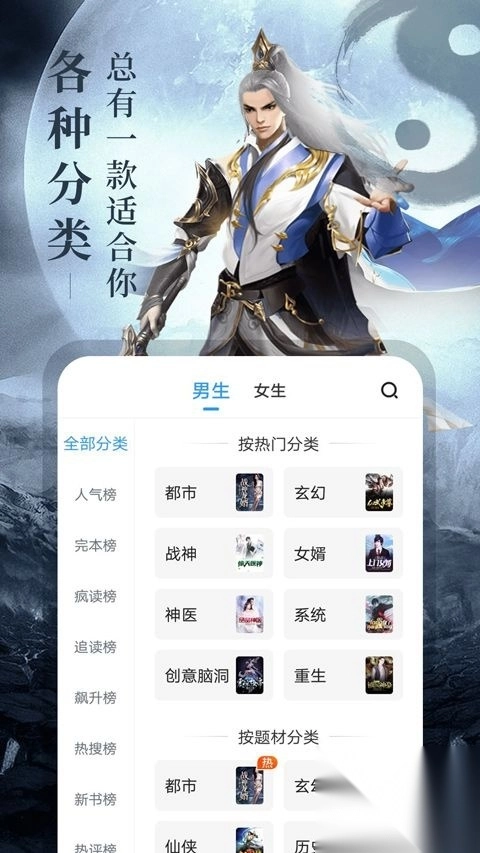 男生专属频道来袭!这里有扣人心弦的都市热血故事,带你领略现实世界中的激情冒险;充满奇思妙想的玄幻奇幻篇章,开启光怪陆离的异世界之旅;古韵悠长的仙侠武侠佳作,感受江湖的恩怨情仇与侠义豪情;波澜壮阔的历史军事题材,重温往昔的金戈铁马与风云变幻;脑洞大开的科幻未来作品,探索未知宇宙的无限可能;紧张刺激的游戏竞技内容,体验虚拟世界的热血对战。各类爽文应有尽有,让你一次看过瘾!