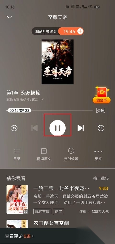 5、另外,你还可以加入书架,配上文字听书