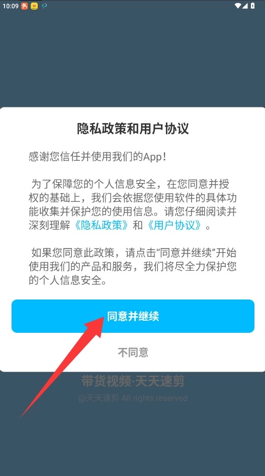 1. 软件启动后,认真阅读用户协议,点击底部蓝色按钮,确认同意使用条款。