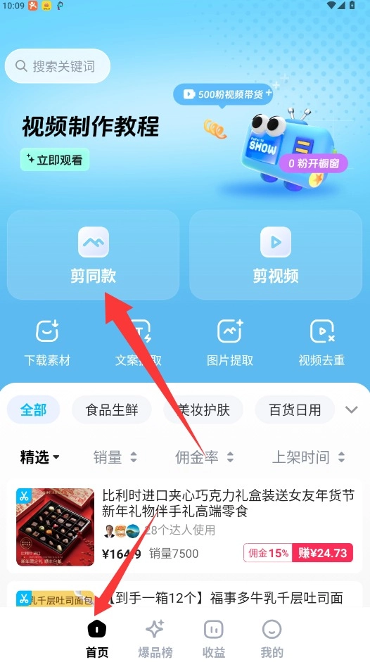 3、 点击"剪视频"按钮,根据指引完成文案编辑和素材选择。