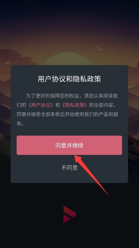 1. 首次使用时,需仔细通读平台服务条款及隐私政策,确认无误后,点击“同意并继续”进入应用。