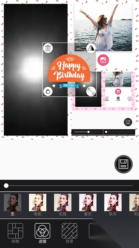 3、【丰富素材】无论是卖萌、节日主题,还是可爱风格……各类创意贴纸任你挑选。多样滤镜,为图片塑造独特风格。你还能添加不同颜色的文字,助力自由表达!热爱修图,就来秀出你的创新个性吧。