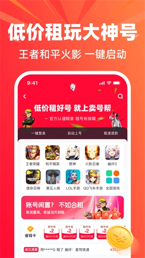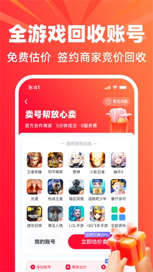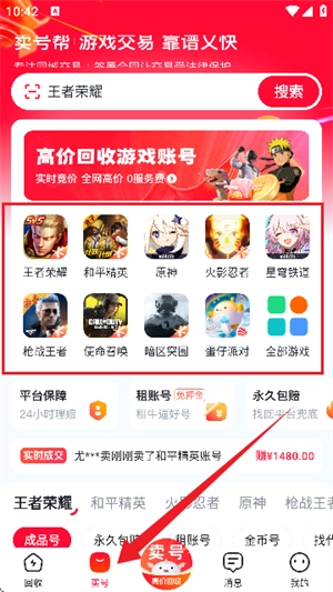 卖号帮app涵盖王者荣耀、和平精英、原神等多款热门游戏账号交易,交易模式丰富,有买卖、租赁等,并且具备实名认证、号码绑定以及交易保险等多重安全验证机制。