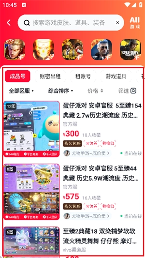 2、精准账号估值:根据装备、等级等信息,提供账号估价。