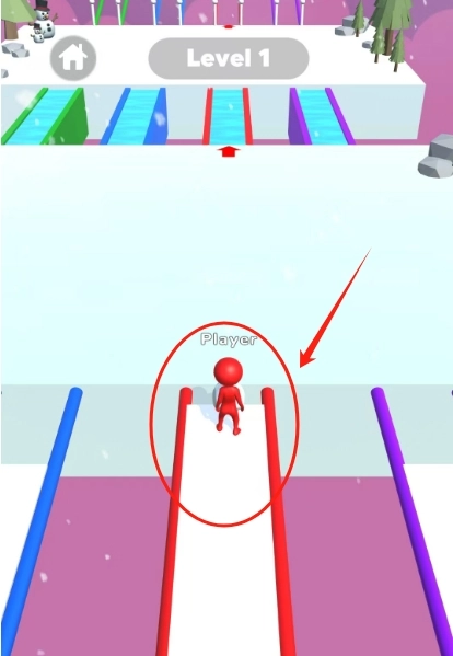 4、随机元素增添变数,赛道内设 “加速带”“减速陷阱”“体积缩小门” 等随机道具点。