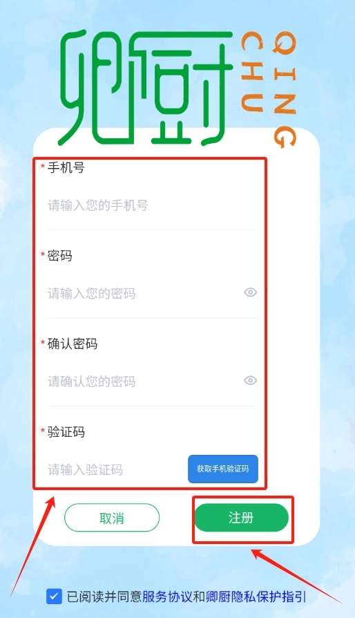1. 于应用市场搜索并下载安装app:开启手机应用市场,在其中搜索“卿厨”,随后下载并安装。安装完毕后,点击进入主界面。