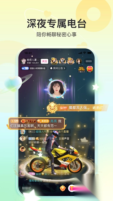 这款软件设有在线动态社区,实时更新热门话题,能将真实的你与精彩纷呈的世界紧密相连;还有多人语音房,方便大家在线聊天,互动交流情感,让彼此合适的人相遇变得更为容易;更值得一提的是,有着众多炫酷礼物进场动效以及节日限定装扮,超强的互动性助力你寻觅到志同道合之人。