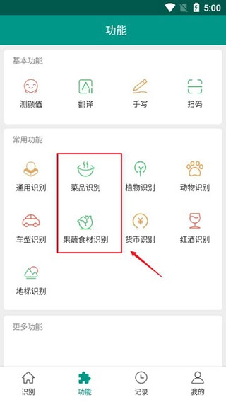 3、另外,还支持果蔬食材识别、菜品识别等;