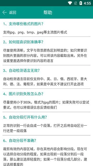 6、可以自定义识别设置,识别到的文字可以自动分段。