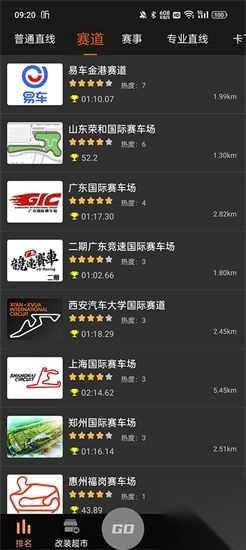 3、赛道模式:涵盖国内各地主流专业赛道以及卡丁赛道的测试模式。车辆经过起点时会自动开始计时,抵达终点则自动结束。此模式下,全程记录速度、横向与纵向加速度、卫星定位轨迹,还能同步视频。