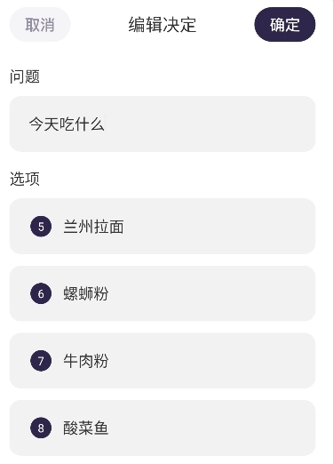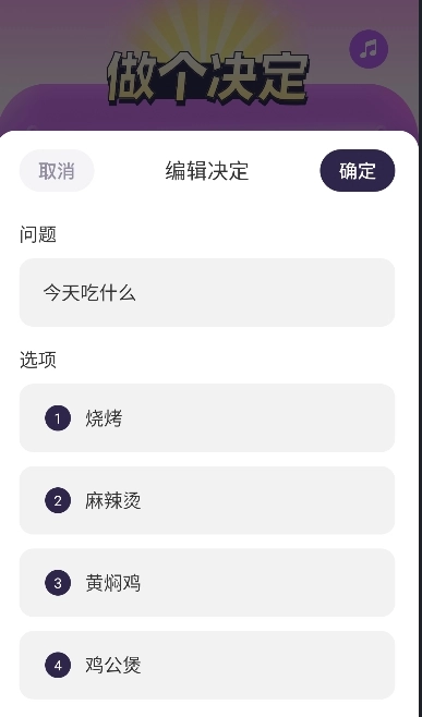 3、可自由编辑问题选项,无论是选择午餐还是挑选礼物,都能快速输入,创建专属的决策场景。