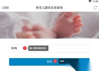 1. 点击“新生儿重名信息查询”选项。