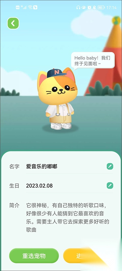 3、用户可以为自己的宠物进行取名,更改生日、简介等,同时还能够重选宠物。