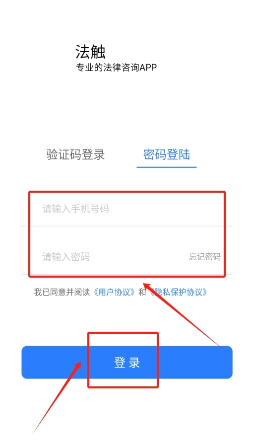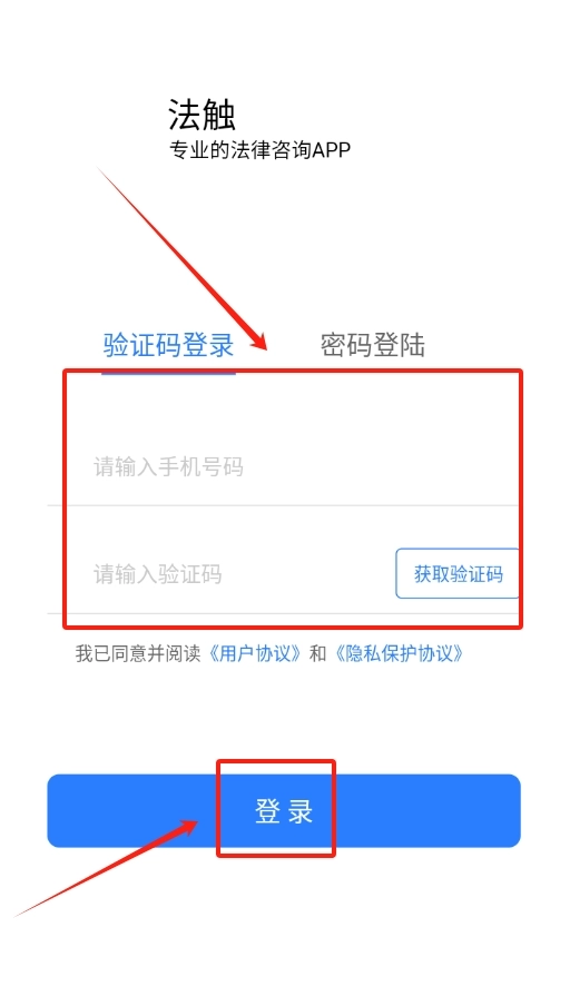 1. 开启法触咨询软件,于登录界面找寻手机号登录入口,输入手机号获取验证码以完成登录。