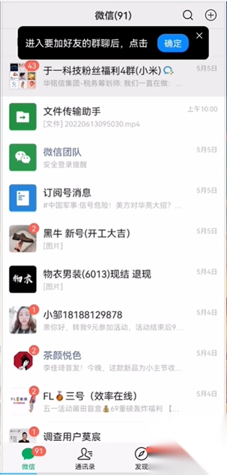 5、然后先进行添加好友(确定后软件会自动添加相关群,无需手动了),添加完成后即可进行发消息了