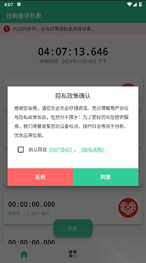 抢购悬浮秒表APP,这是一款专门为热衷于秒杀活动的用户打造的辅助应用程序,其目的在于助力用户在激烈的抢购大战里脱颖而出。不过需要注意的是,抢购最终能否成功,还会受到诸如网络状况、商品剩余库存量以及竞争对手人数等诸多不确定因素的制约。