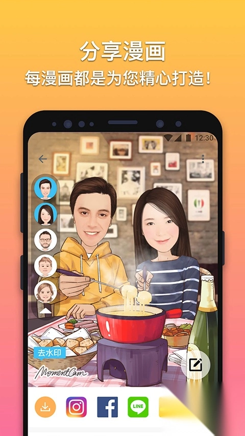 1. 瞬间让真人变身独具风格的私人艺术漫画形象,以多样百变的造型在社交平台尽情畅玩。