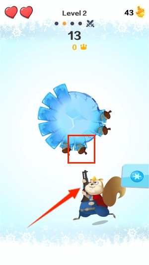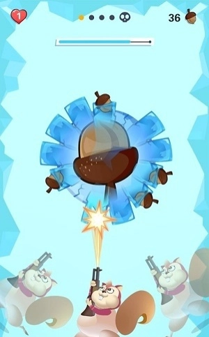 1、核心玩法要求玩家控制松鼠发射松果,通过触屏滑动调整发射角度,松开手指发射松果击落空中的目标坚果。