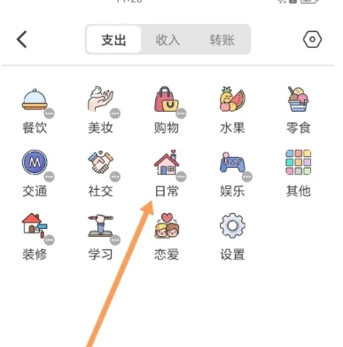 2、在账单分类中找到【日常】点击