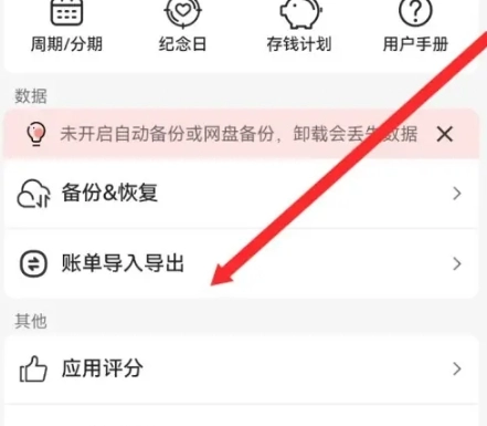 1、进入木木记账APP页面,点击下面的账单导入导出选项