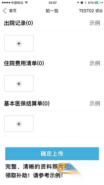 能够使用相机及时拍照上传,2265可以拍摄出院记录、费用清单和结算单