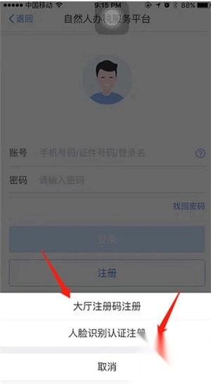 4、有大厅注册和人脸注册,选择人脸注册,大厅注册需要持有效证件去柜台办理