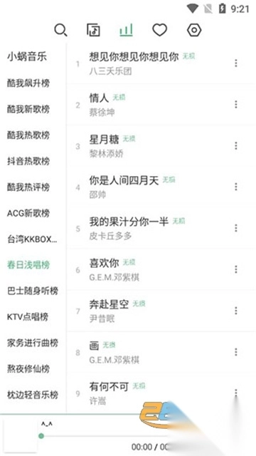 5、支持潮流榜、怀旧榜、华语榜、欧美榜、韩国榜、日本榜;